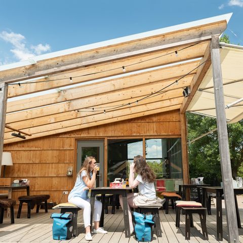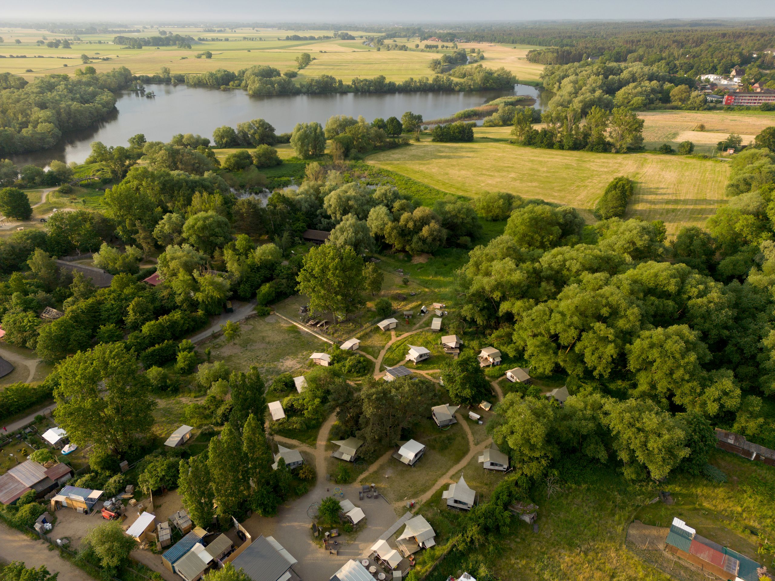 Natürliches Wohlgefühl, aber auch Langlebigkeit, Regionalität und Bioqualität sind den Dannebergs echte Herzensangelegenheiten. Das ist an jeder Ecke zu erkennen. An den aus alten Flaschen hergestellten, wiederauffüllbaren Seifenspendern (die Seife duftet übrigens köstlich nach Zitrus-Olivenöl). An den geruchsneutralen Komposttoiletten in den Plus-Hütten. Am Gras zwischen den Holzhütten, das romantisch wildwuchern darf. Und nicht zuletzt auch im Bistro, in dessen Küche ausschließlich Bioprodukte verwendet werden.