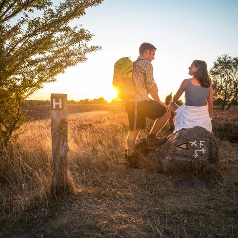 Der Heidschnuckenweg ist zu jeder Jahreszeit ein Highlight. Besonders farbenfroh wird es jedoch im Spätsommer, wenn die Besenheide blüht und sich das flache Land in ein Meer aus Violett und Purpur verwandelt. Kein Wunder, denn hier befinden sich die größten zusammenhängenden Heideflächen Mitteleuropas. Für etwa vier Wochen im Jahr – vom 08.08.–09.09. lautet die Faustregel – lässt sich das Farbspektakel der Heideblüte bewundern.