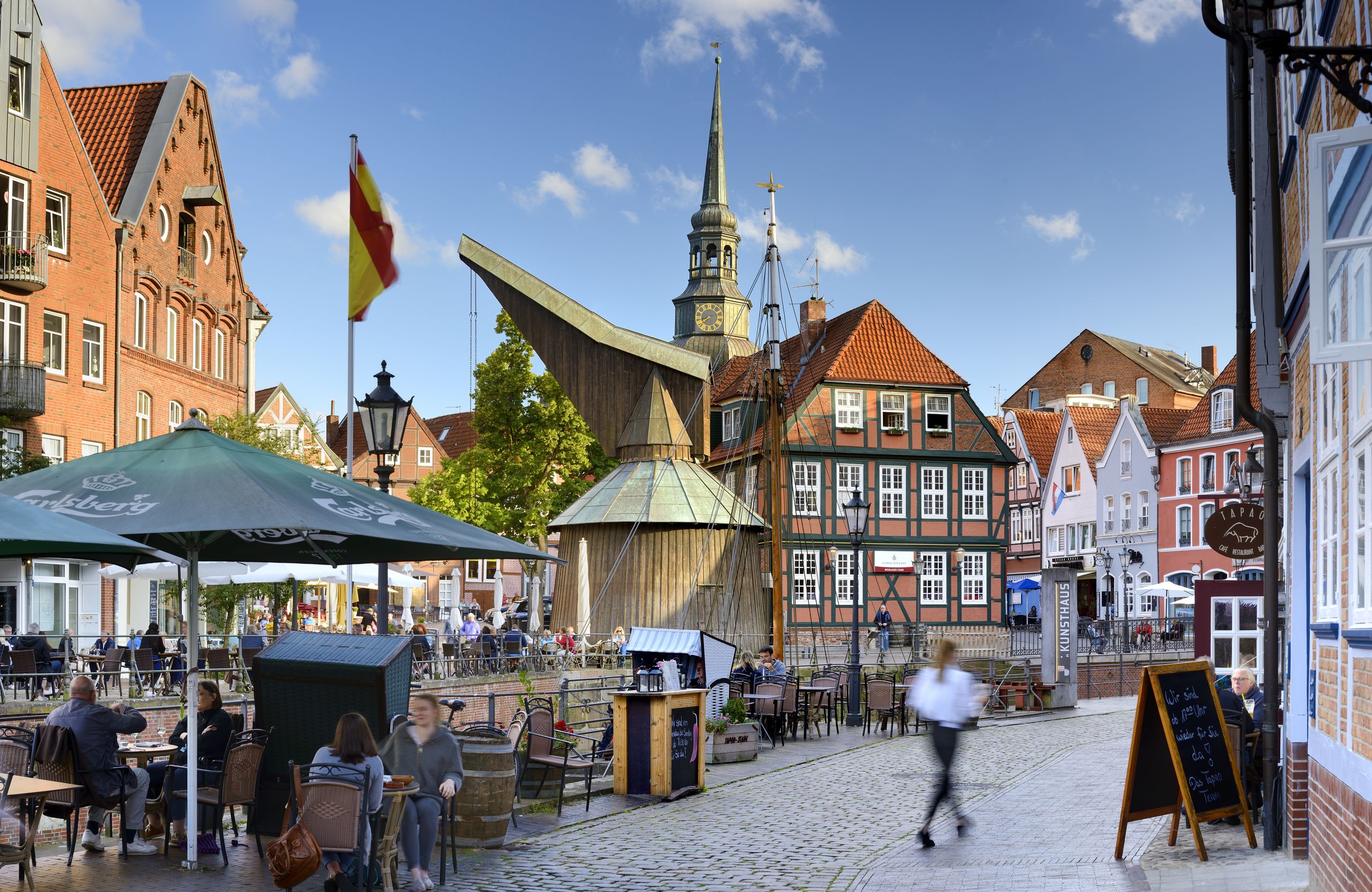 Stade - Hansestadt, Fachwerk und maritimes Flair. Entdecken Sie die gut erhaltene Altstadt mit ihren malerischen Fachwerkhäusern, gemütlichen Cafés und historischen Sehenswürdigkeiten. Ein Ort, an dem Geschichte lebendig wird und jeder Schritt durch die gepflasterten Gassen Sie in vergangene Zeiten zurückversetzt. Spazieren Sie entlang des alten Hansehafens. Wo vor langer Zeit Schiffe entladen wurden, laden nun Kneipen und Cafés mit Sommerterrassen direkt am Wasser zum Verweilen ein. Erleben Sie das maritime Erbe hautnah und lassen Sie die Seele baumeln. Vielleicht ja auch bei einer Shoppingtour durch die zahlreichen Boutiquen und Kunsthandwerksläden. Ein Besuch in dieser bezaubernden Hansestadt ist wie eine Reise in eine andere Zeit – voller Entdeckungen, Genuss und unvergesslicher Momente.
