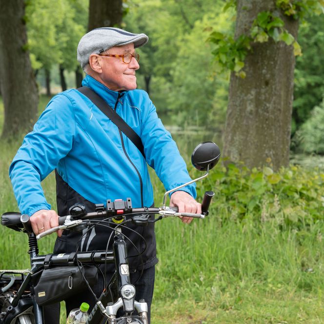 Hier treffen wir uns mit unserem Guide. Lambertus Arends kommt mit seinem Fahrrad angesaust, rückt sich die Schiebermütze zurecht und grüßt uns mit markantem Zungenschlag, dem der Einfluss des Plattdeutschen anzumerken ist. Einen qualifizierteren Guide hätten wir kaum finden können. Arends ist gebürtig aus Nordhorn, der größten Stadt an der niedersächsischen Vechtetalroute, und legt im Monat mehr als 1000 Kilometer mit dem Rad zurück. „Wenn mich meine Freunde im Auto sehen würden, würden sie fragen, ob ich krank sei“, sagt er.